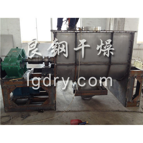 以高效、快速混合物料、由攪拌軸的螺旋帶運(yùn)動(dòng)下,使內(nèi)外螺旋帶在較大范圍內(nèi)翻動(dòng)物料,內(nèi)螺旋帶將物料向兩側(cè)運(yùn)動(dòng),外螺旋帶將物料由兩側(cè)向內(nèi)運(yùn)動(dòng),使物料來(lái)回滲混,另部分物料被螺旋帶推動(dòng)下,沒軸向徑向運(yùn)動(dòng),從而形成對(duì)流循環(huán)。由于上述運(yùn)動(dòng)的攪拌,物料在較短時(shí)間內(nèi)獲得快速…